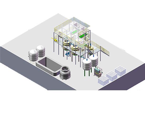 2.設(shè)備包括工業(yè)純水機(jī),固體計(jì)量秤,液體計(jì)量設(shè)備,反應(yīng)釜(元素消化器),固液分離機(jī),投料平臺(tái),原料提升機(jī),冷卻成品罐,冷卻塔,灌裝生產(chǎn)線。